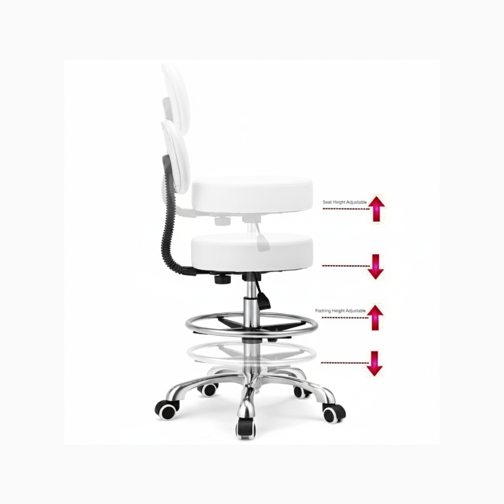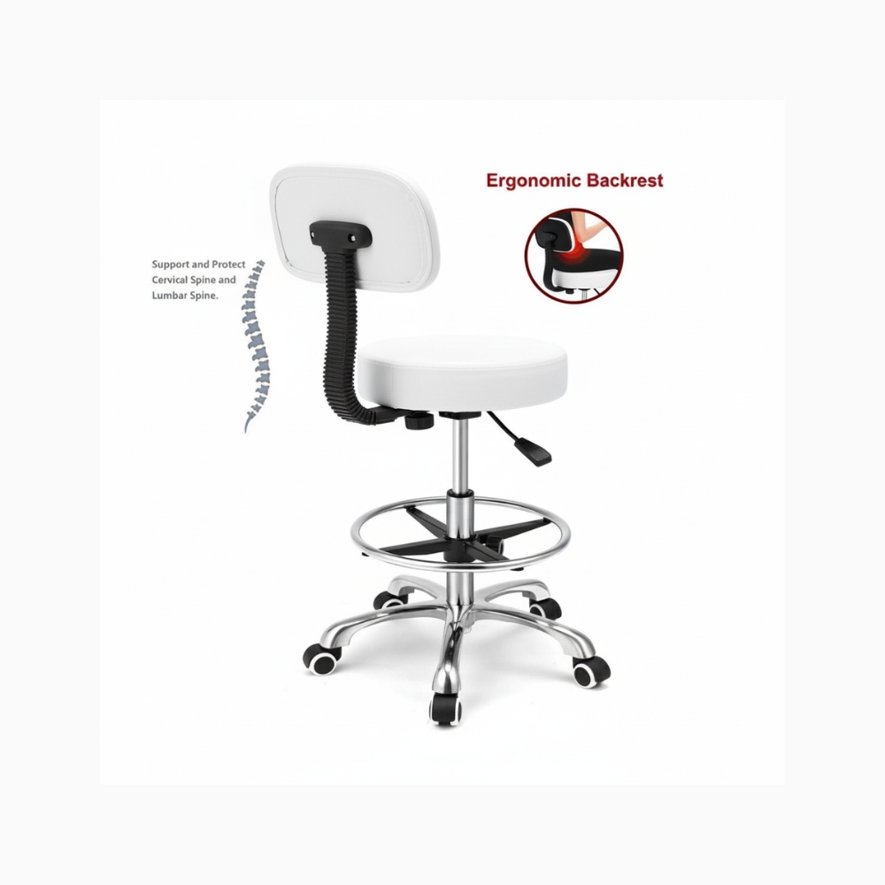 Upgrade your workspace with the Therapist Back Rest & Foot Rest Massage Stool, engineered for comfort, mobility, and ergonomic support. Designed with both a supportive backrest and integrated footrest, this stool allows therapists to maintain proper posture, reduce fatigue, and stay energized throughout long sessions. Perfect for spas, salons, clinics, and wellness centers, it delivers professional durability with a sleek, modern look.