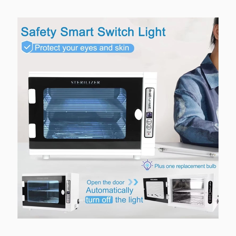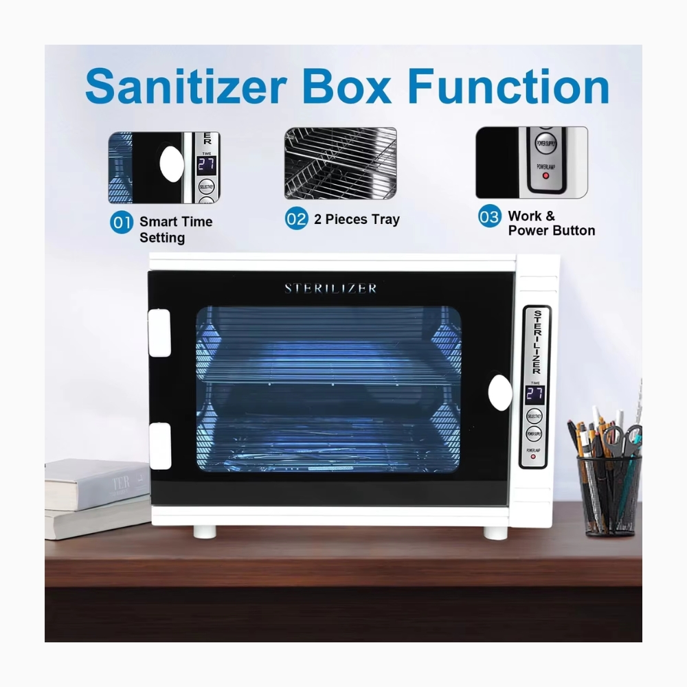 Perfect for salons, spas, and home use, this 16L UV Sterilizer Cabinet ensures safe, effective, and thorough disinfection for towels, manicure tools, scissors, nail nippers, and more. Built with advanced UV light technology and precise temperature control, it guarantees 99% sterilization efficiency while keeping items safe from damage.
